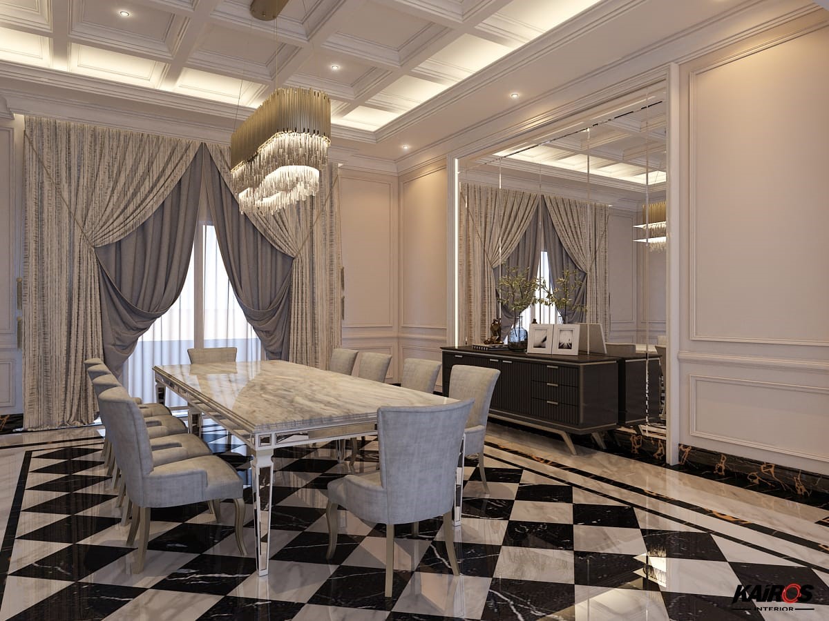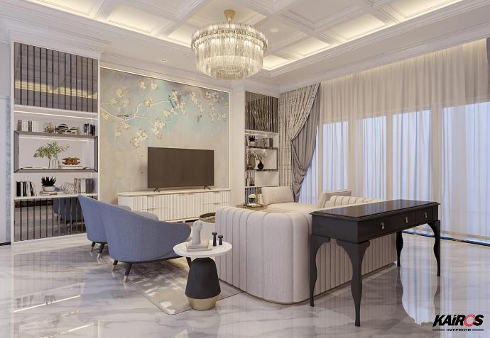 Menambahkan chadelier pada ruangan. Untuk menciptakan ilusi pada ruangan dan menjadikan ruangan tampak lebih unik dan menarik.