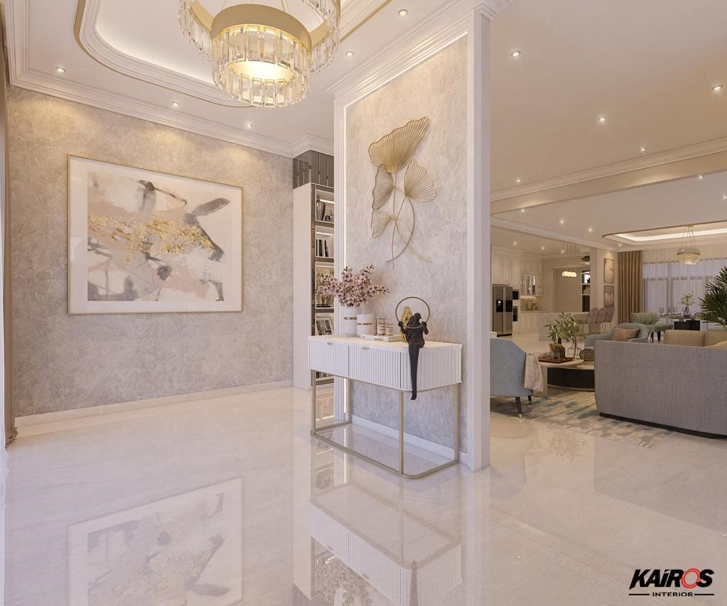Menambahkan meja konsol pada area foyer untuk menciptakan kesan dinamis, tampilan mewah dan juga timeless classic pada ruangan.
