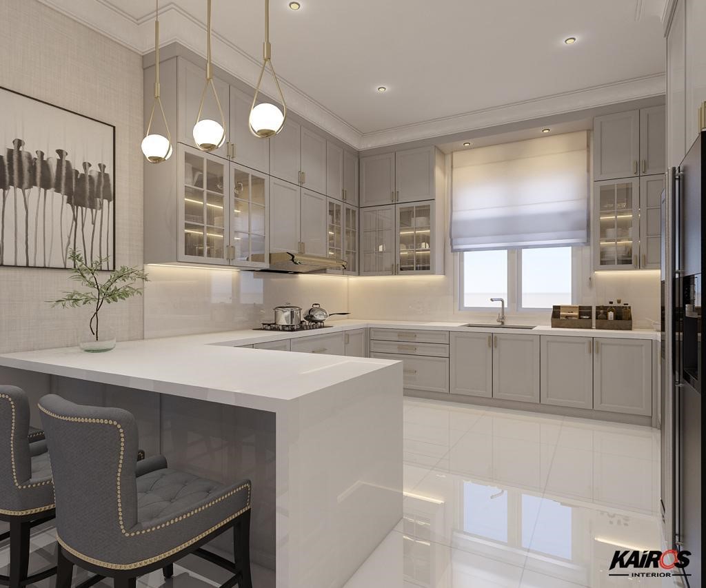 Pantry set letter U berbentuk seperti huruf "U" yang cocok untuk dapur berukuran cukup besar.