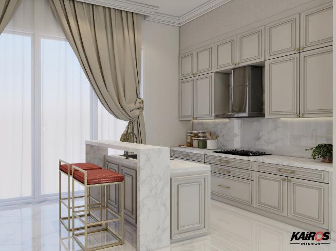Gaya modern yang lebih inovatif, menekankan pada suasana yang menggambarkan masa depan yang penuh dengan teknologi canggih. Biasanya material yang digunakan berwarna putih, perak atau penuh dengan kaca serta garis-garis tegas.